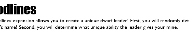 The new release for Dwarf Mine is here! You can find the important information on the release below. What is Included in the Dwarf Mine Update There are 2 expansions and 3 appendices included in this update for Dwarf Mine. Bloodlines Expansion The Bloodlines Expansion gives your dwarf leader a name, and a unique ability … Continue reading Dwarf Mine – New Release