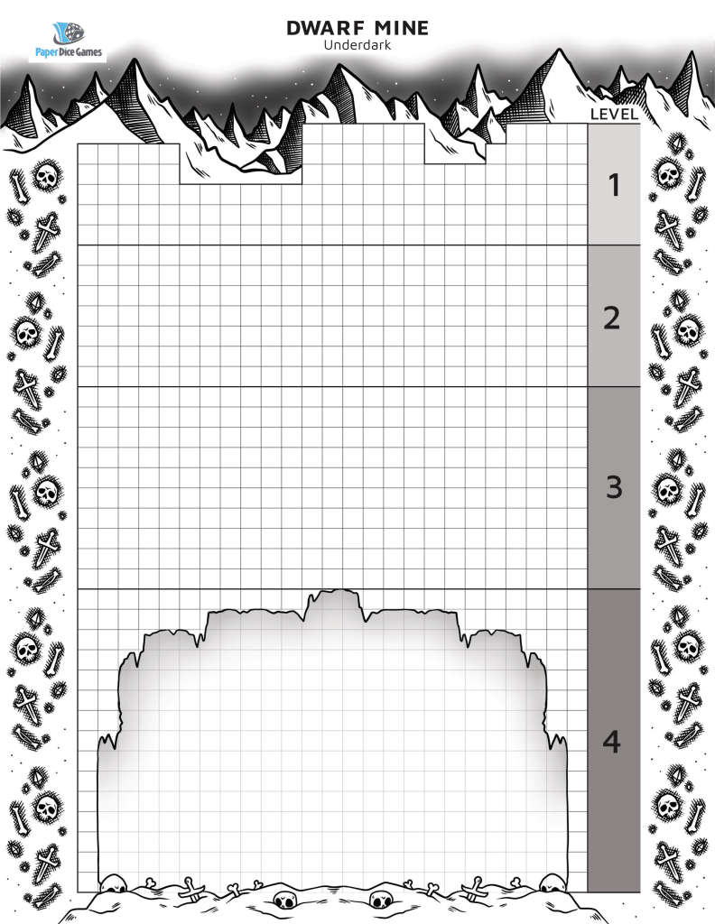Hidden well beneath the great mountains, there exists a gloomy and gargantuan cavern inhabited by the dark civilizations of the world. Goblins, Dark Elves, and Dark Dwarves build their armies and thrive in the empty spaces between the stone. Your mine will dig deep and reach the fabled Underdark. Will you navigate the dangers of the Underdark and survive in the dark place beneath the mountain? Or will the dangerous creatures spell your doom. Play to find out, as your mine tells its story!