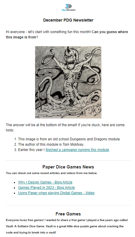 Do you like playing games with paper and dice? So do I! Join our mailing list and get sent free games, get updates on Paper Dice Games, and find out more about tabletop games!