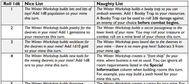 “Welcome to the Winter Workshop.” The dwarf’s eyes twinkled and he gave a jolly laugh. “Now,” he continued, “Would you be on the nice list?”
