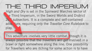 However, I have read some groups using it as a go-between adventure when they lose their ship, and are in need of a new one. So, if you have a Traveller campaign already started and your group finds themselves in need of a ship, this adventure could be a big help.