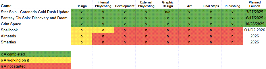 I’ll be using the results from the survey to help make some important decisions for 2026. These include final roadmap decisions for games I’ll be designing, whether or not I should prioritize print on demand, and others. Your input is extremely helpful in making these decisions, so I appreciate your time!